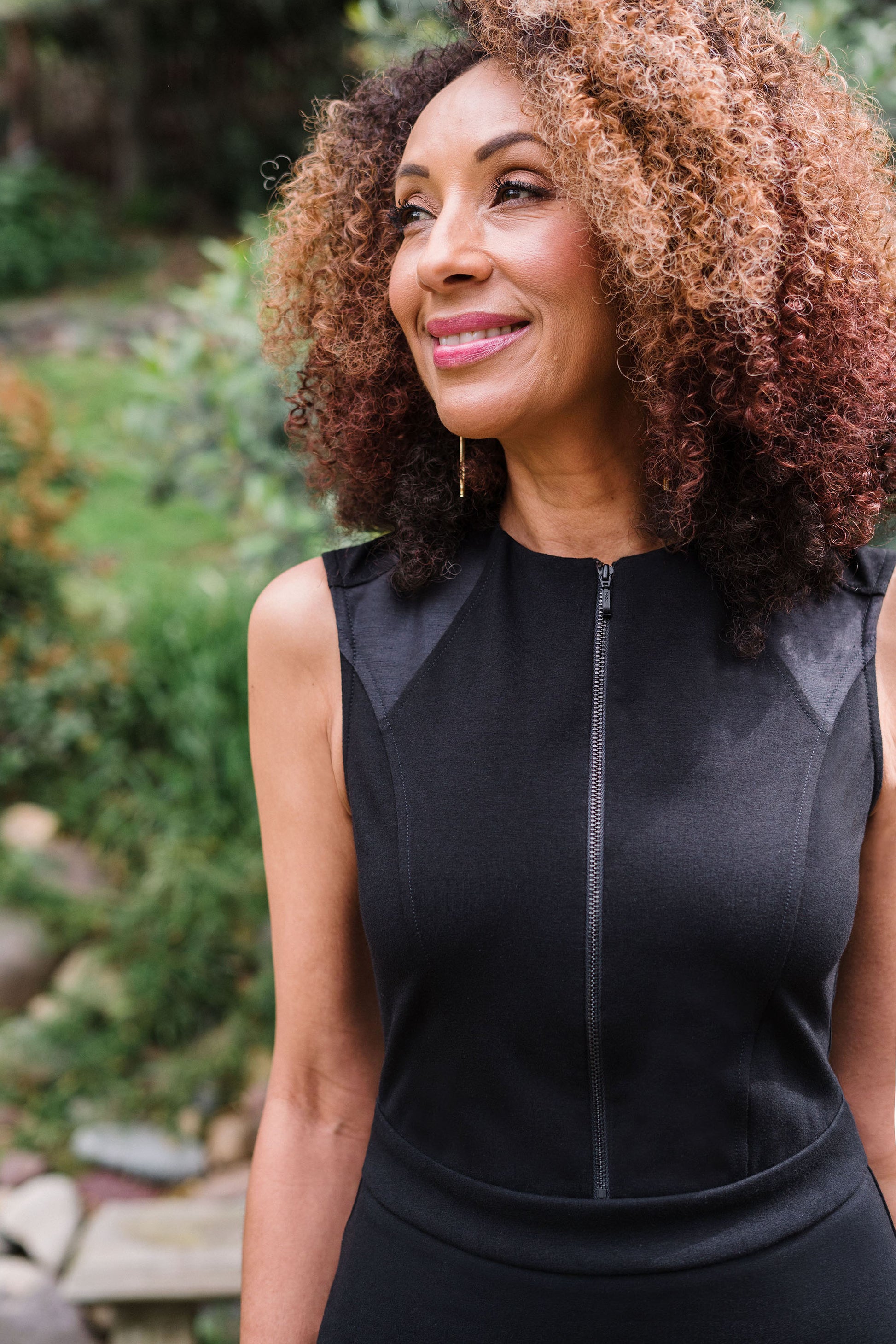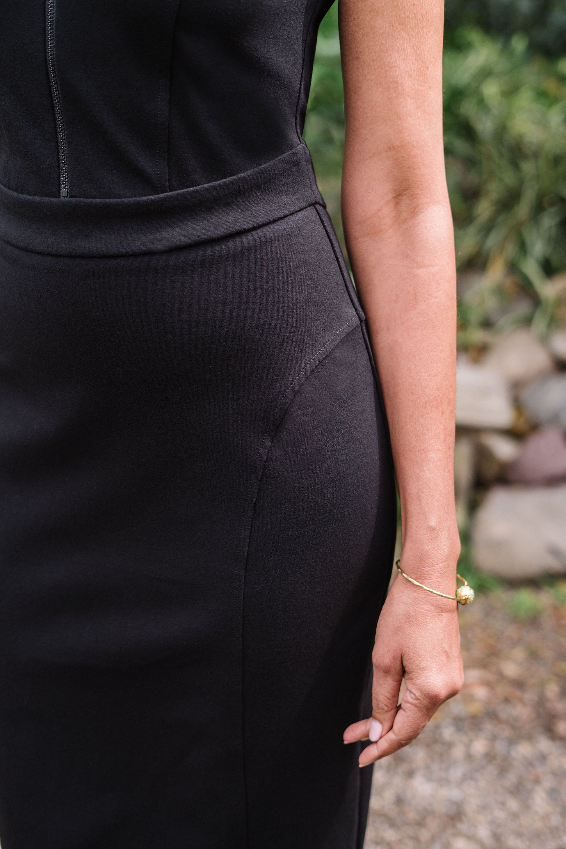 Inspired by our love of pop-culture super heroines, this sleek little black dress features a zip-front bodice and curve-accenting seam details. Stealth leisure: Cut from a luxe bamboo/organic cotton Ponte to help you stay chic and comfortable even in the heat of battle.