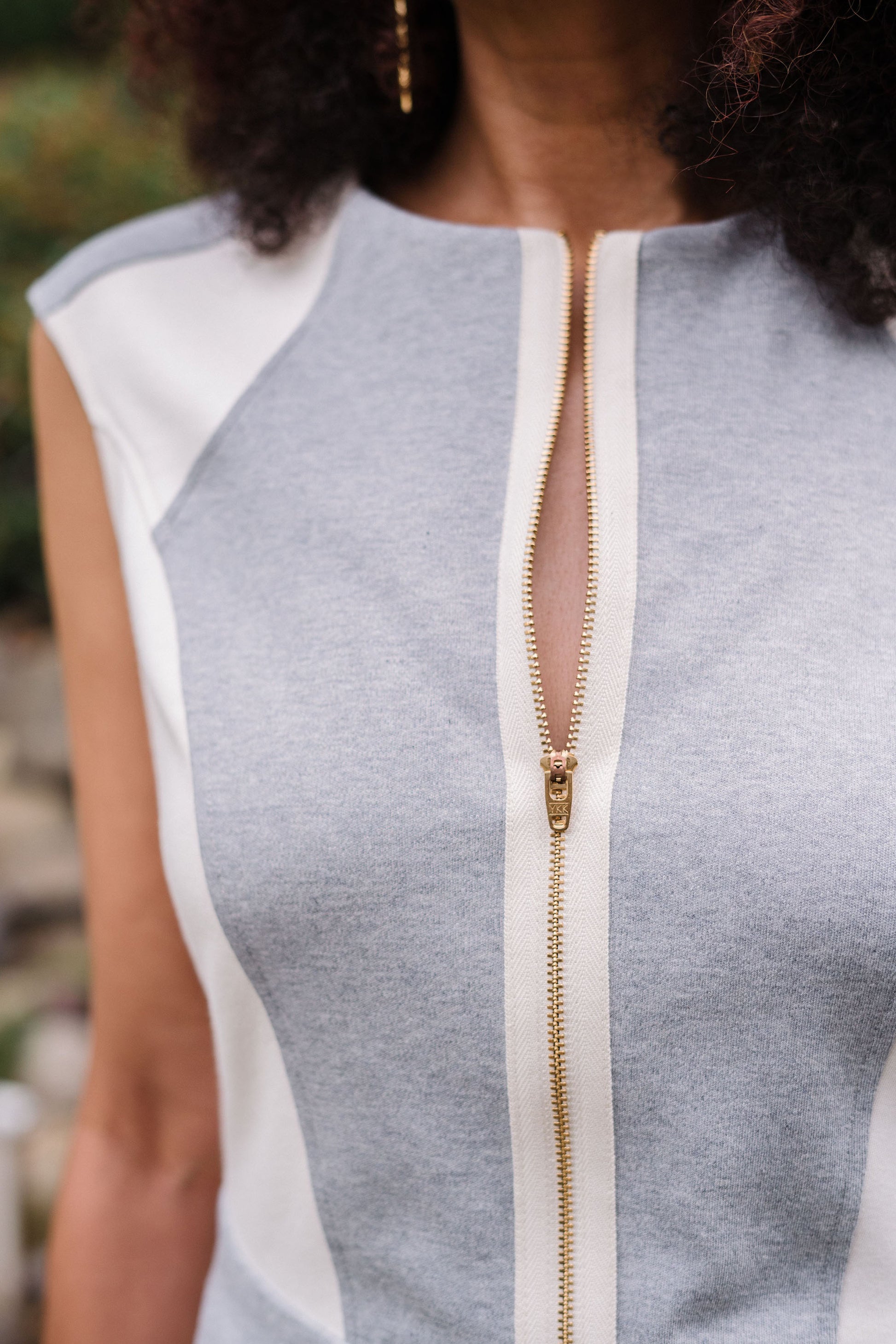 Inspired by our love of pop-culture super heroines, this sleek dress features a zip-front bodice and curve-accenting seam details. Stealth leisure: Cut from a certified organic cotton interlock to help our Heroines stay chic and comfortable even in the heat of battle.