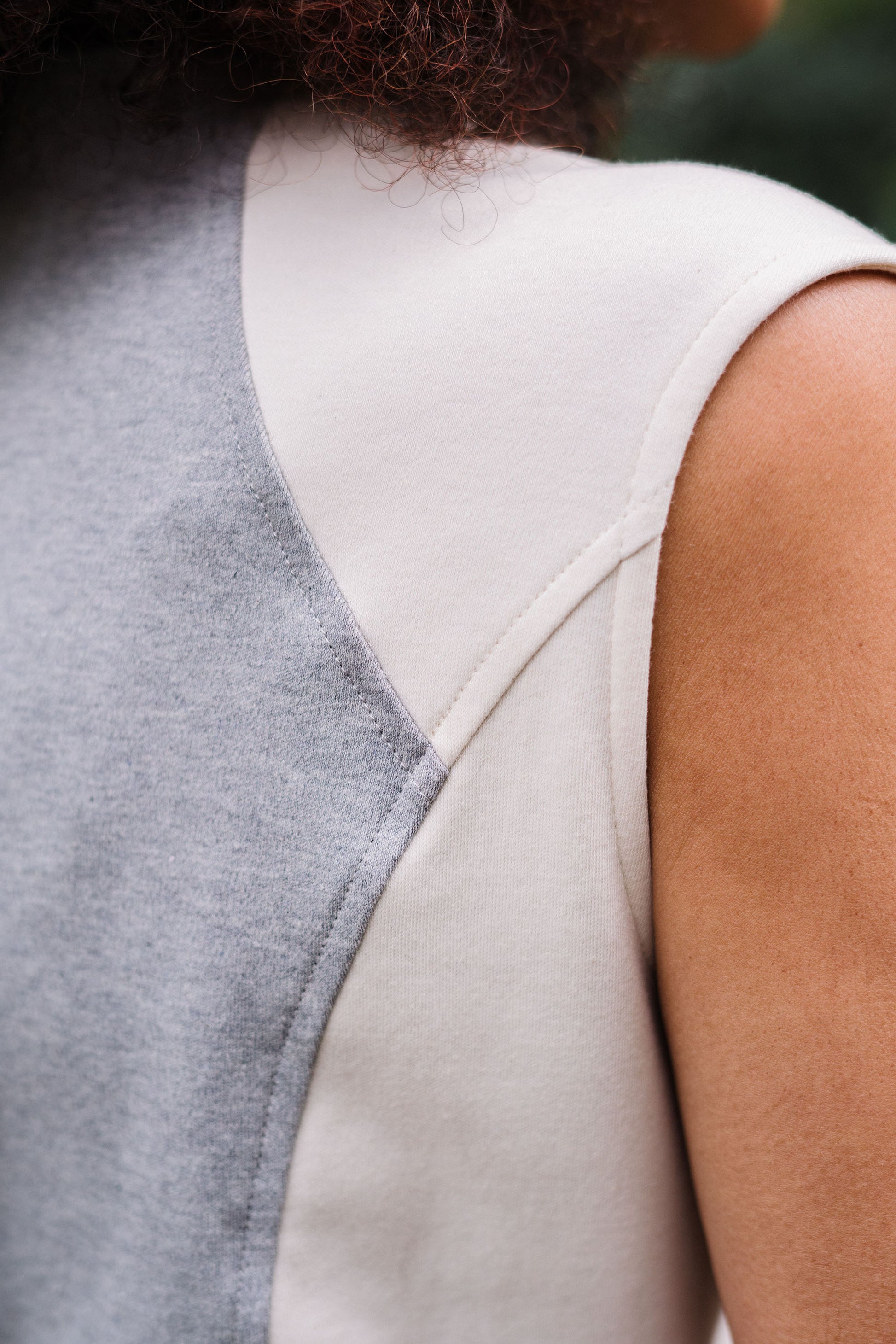 - Zip-front bodice with brass zipper on recycled cotton tape