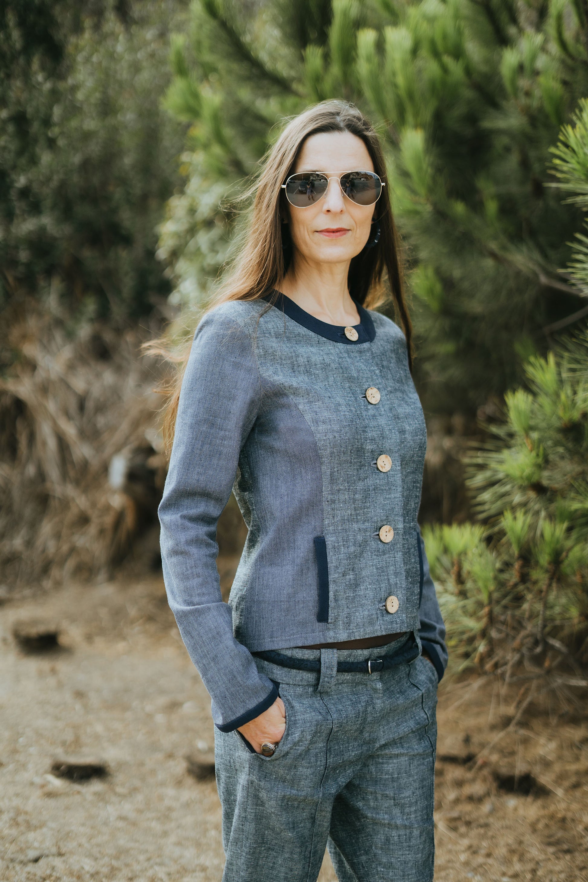 Rediscover an old-school Stealth Leisure classic. A fresh take on the chic/comfy French cardigan-jacket, paneled in crisp, cool hemp/organic cotton chambray and soft indigo twill. The rounded collar features a tweed trim carefully collected from our cutting-floor remnants. This is an instant wardrobe treasure, comfortable yet polished, for multiple seasons and occasions: Wear with the Pin-Tuck Trouser for a jumpsuit look; pair with the matching tweed Slant-Vent Pencil Skirt for effortless desk-to-dinner style.