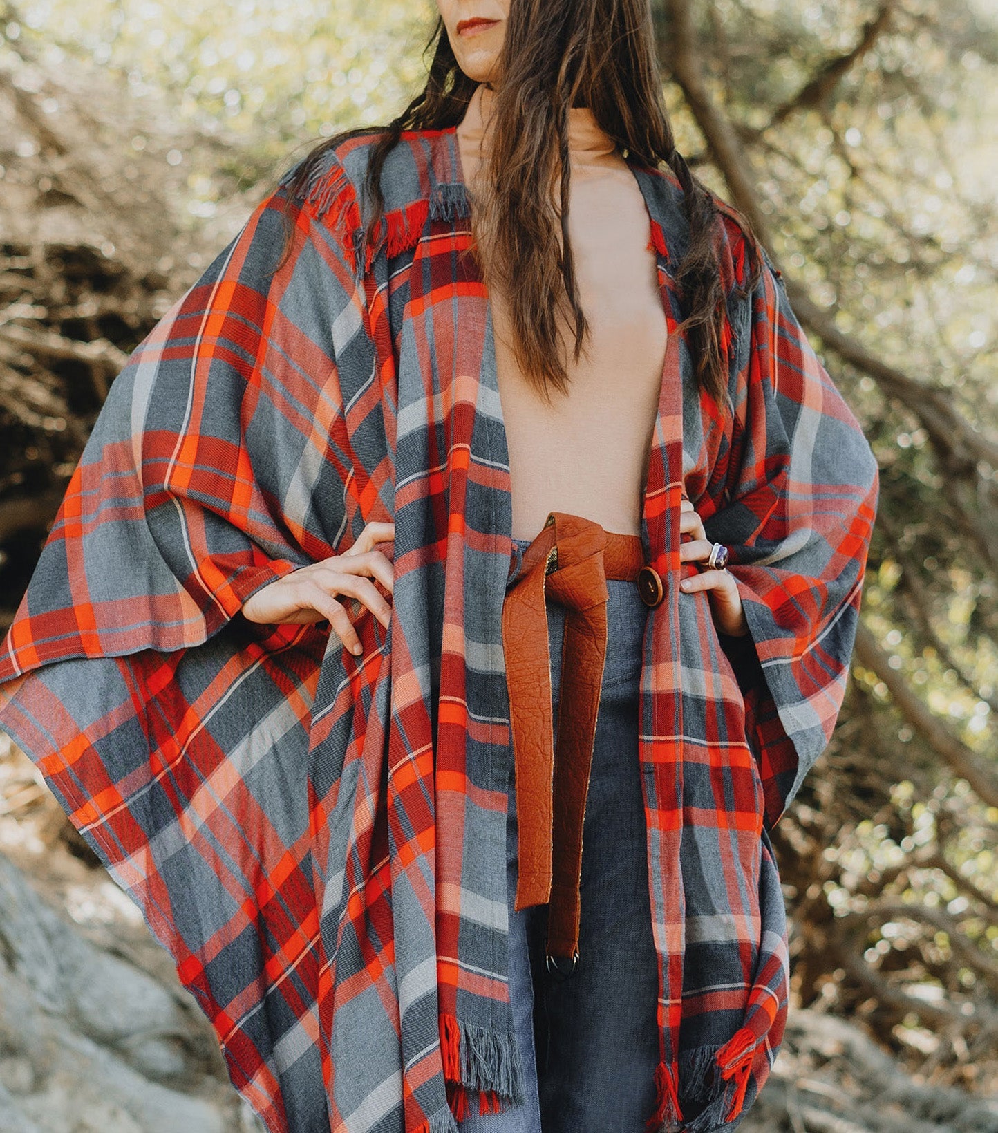 Cut from luxurious Piñatex, a revolutionary plant-based, cruelty-free leather alternative. Reversible to reveal a silk deadstock (discontinued) fabric pieced together with handstitched detail. The Copper Spice colorway features vintage silk tie fabric; the Charcoal option features pieced-together Hemp/Silk Satin remnants.